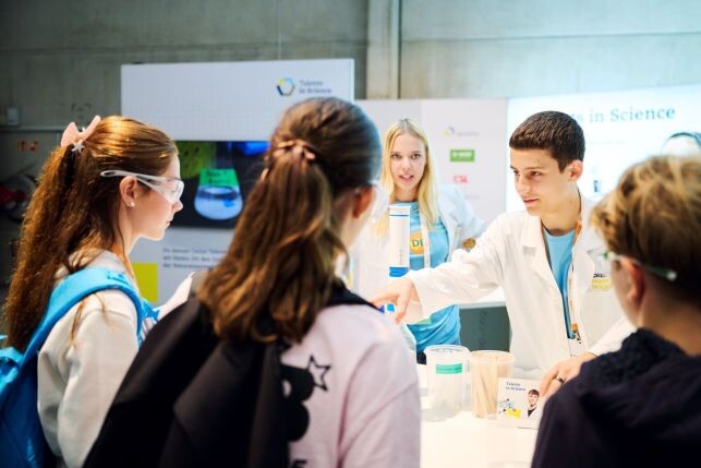Gemeinsam mit aprentas, BASF, CSL Vifor, Novartis, Roche, Sika und Syngenta präsentierte sich die gemeinsame Nachwuchsinitiative "Talents in Science" am Stand 110 in Halle 3.2 unter einem einheitlichen Auftritt. Das gemeinsame Ziel: Jugendlichen die faszinierende Welt der Chemie-, Pharma- und Life Sciences-Berufe näherbringen.